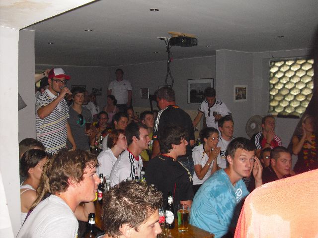Fussball WM/EM Alle zwei Jahre ist die Hölle los! Es ist Fussballzeit und das gibt oft genug Grund zum Feiern. In der Endrunde der Fussball-WM2006 (wir erinnern uns alle) konnten unsere Feiern mit den großen Fanmeieln locker mithalten. Die Hauptstraße ist dann bis eine Stunde nach dem Spiel von jubenden Fans belagert und der ein oder andere Autofahrer kam unerwartet zu einem Glas Sekt. Pünktlich zur EM 2008 wurde auch unser neues WM-Räumchen fertig, das während der fussballfreien Zeit nur zur Generalversammlung und als Lagerraum genutzt wird. Wir sehn uns 2010 - nicht in Südafrika sondern im Bunker - HINSETZEN - |