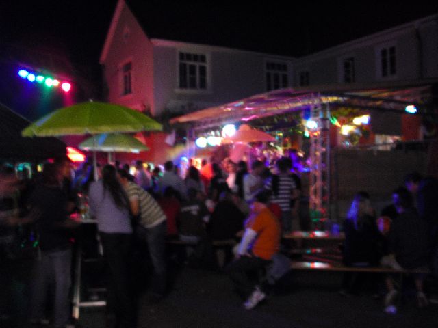 Cocktailparty Cocktails schmecken, und natürlich am besten bei gutem Wetter. In den letzten Jahren hat sich eine richtige Cocktail-Fangemeinde gefunden die hauptsächlich "Havanna-Club-Cola" favorisiert. Und das nicht nur an Festen. Scheint die Sonne in den Hof wird die Eismaschine angeschmissen und es kann losgehen. Aber auch andere leckere Cocktails sind an diesem Abend im Angebot. Da Cocktails nur im Sommer richtig gut schmecken, unser Sommer aber mit Terminen meist überfüllt ist, fand auch die Cocktailnacht schon lange nicht mehr statt. |