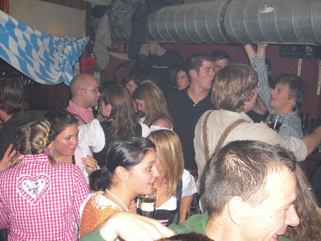 Das Bunker Oktoberfest, nach der Kerb unsere zweitgrößte Veranstaltung, fand traditionell am 2. Oktoberwochenende statt. In 2009 haben wir unseren Terminkalender entzerrt, sodass sich der Termin nun um 1-2 Wochen nach hinten verschiebt. So ist auch mehr Zeitraum zwischen Oktober- und Fedifest, welches ja auch im Oktober stattfindet. Blau weiß geschmückt, mit einem original Paulaner Wiesenbier in der Hand und bei Musik zum Mitsingen lässt es sich an diesem Wochenende im Bunker gut aushalten. Und wer Kraft und Geschick unter Beweis stellen möchte kann sich am Hackklotz mit Nagel und Hammer versuchen um sich danach wieder mit Brezen, Weißwurst, süßem Sef und einem weiteren Bierchen zu stärken. In den letzten Jahren hat sich auch die Anzalh an Dirndeln und Lederhosen stark erhöht, sodass man sich fast wie beim Original vorkommt. |