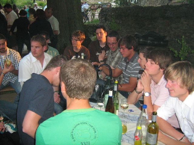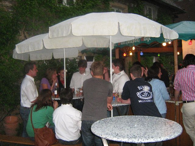 ... zweites Maiwochenende Unsere zweite Party ist eigentlich keine Bunkerparty. Der Bunker hat anlässlich des Wallhäuser Rotweinfests (am Muttertagswochenende) geöffnet. Dann findet man bei uns hauptsächlich Leute, die schon in den Genuss eines guten Glases Wallhäuser Rotwein gekommen sind und nun, für zwischendurch, Gelüste auf ein Bierchen haben. Manch einer, oder einer mehr ist dann auch gleich geblieben, und das nicht nur um der Regengarantie des oftmals mittelmäßigen Maiwetter zu entgehen. Hier Bilder aus dem Schloss Wallhausen |